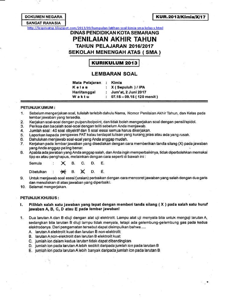 Mempunyai derajat ionisasi (α) = 1 c. 0 ratings0% found this document useful (0 votes). Soal pat (ukk) ini ialah kumpulan file yang berisi latihan soal pat kimia sma kelas 10 kurtilas tahun 2021 yang bisa digunakan oleh pendidik yang bakal menyelenggarakan penilaian akhir tahun. Inilah pembahasan soal dan jawaban latihan uas dan pas untuk siswa kelas 10 sma pelajaran kimia. Rumus kimia garam yang benar berdasarkan tabel kation dan anion: